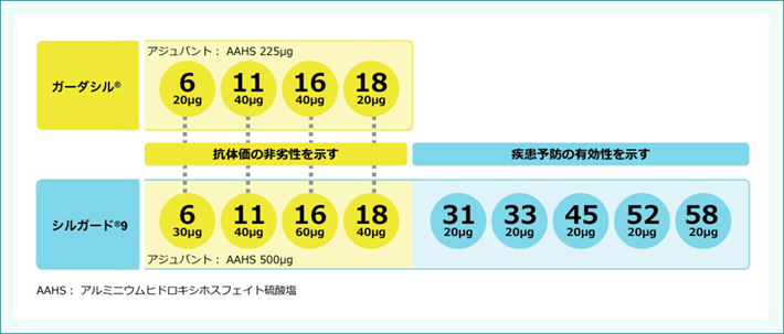 従来のガーダシルに比べて、シルガード9は5種類多くHPVの感染を予防するので、効果が20%高くなります。