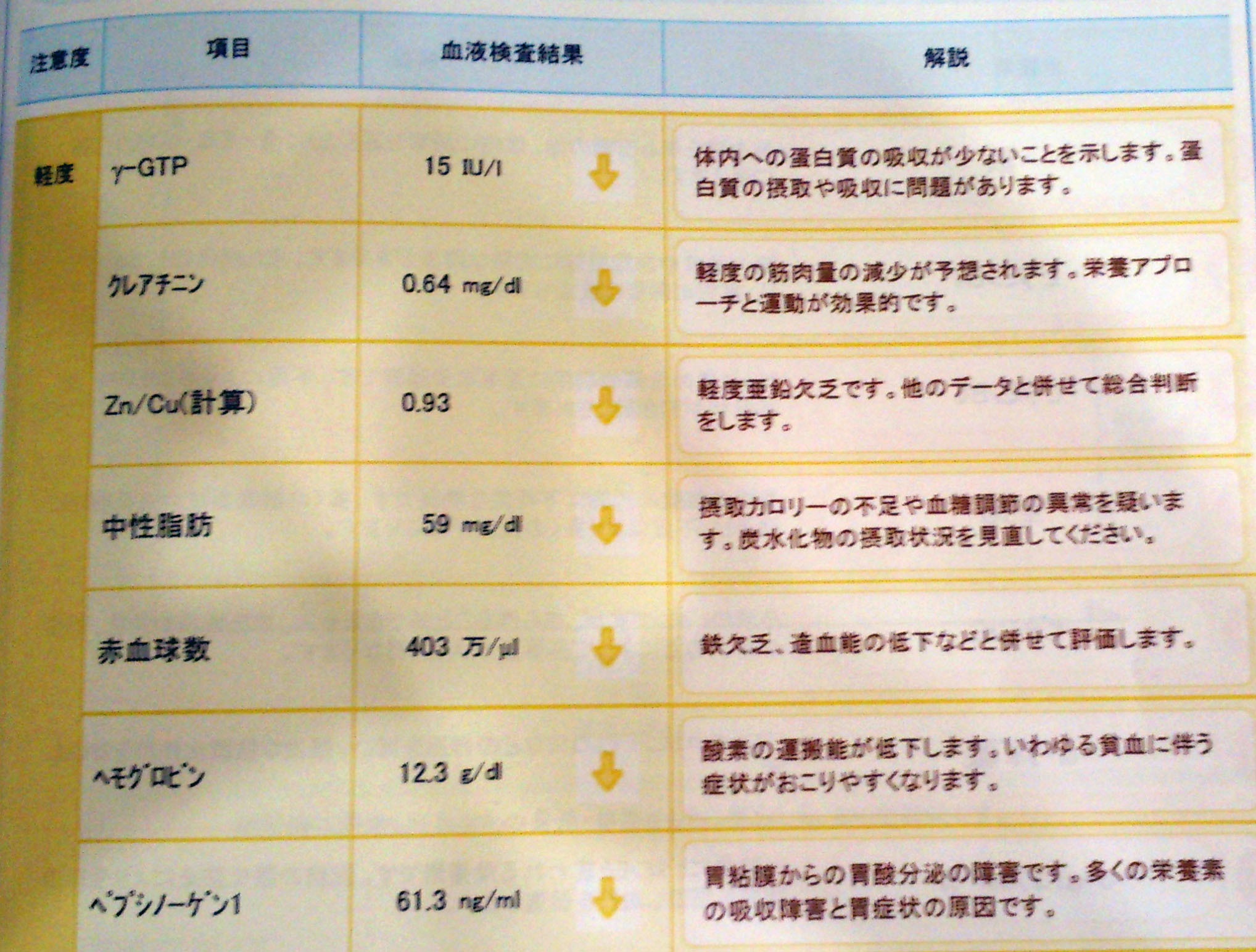 採血検査レポートの見本
