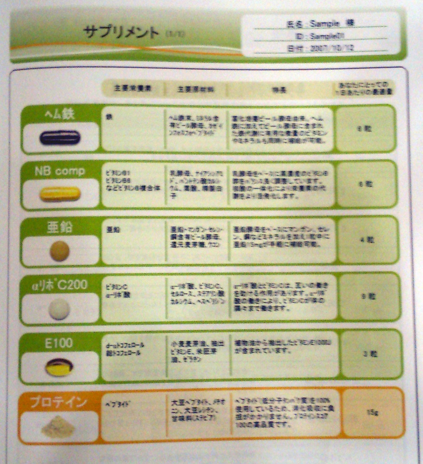 サプリメントレポートの見本